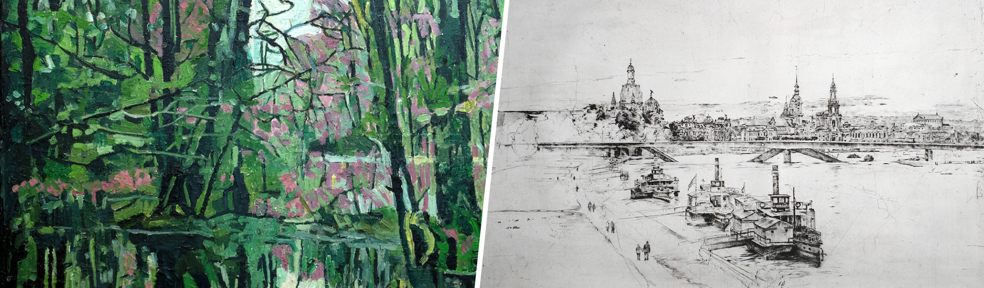Die Doppelausstellung der Künstlerfreunde und einstigen Weggefährten Anita Rempe und Markus Retzlaff ist ein gemeinsames, bereits lang gehegtes Projekt, dass nun Zeit und Ort gefunden hat. Beide Kunstschaffenden finden ihre bildkünstlerischen Anregungen seither im Landschaftsbild der Region: von Elbe und Meißner Hochland bis hin zu den sächsischen Wald- und Hügellandschaften. Wenngleich ihre Handschriften unterschiedlicher kaum sein könnten, teilen sie ein tiefes Interesse an der geistesgeschichtlichen Entwicklung und soziokulturellen Prägung dieser traditionsreichen Kulturlandschaft: Rempe nähert sich ihr malerisch, unmittelbar aus der Anschauung, während Retzlaff sie nach dem zeichnerischen in-situ-Studium druckgrafisch präzise in Linie und Ton übersetzt. In dieser Gegenüberstellung wird die Vielfalt sächsischer Landschaftsbilder ebenso sichtbar wie ihre Erweiterung in urbane Topografien und politische Kontexte.