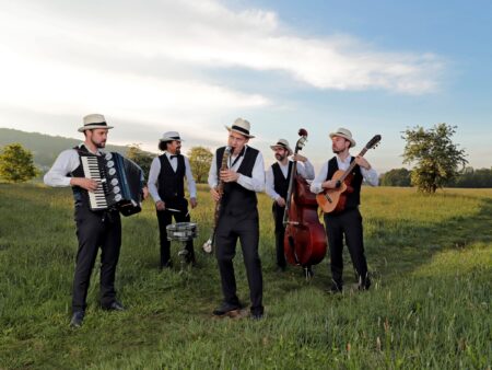 Klezmer trifft Balkan, Tango flirtet mit Cumbia, Chanson küsst Italo-Schlager. Seit 2003 auf Bühnen von Dresden bis Montpellier. Keine Bagel. Aber Bagles. Und die sind heiß.